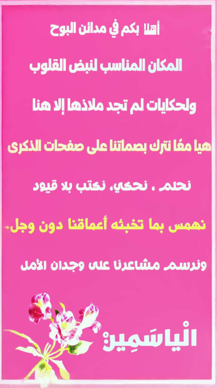 | أرواح أنارت مدائن البوح شرفة للترحيب والتهاني والتَفَقُد |