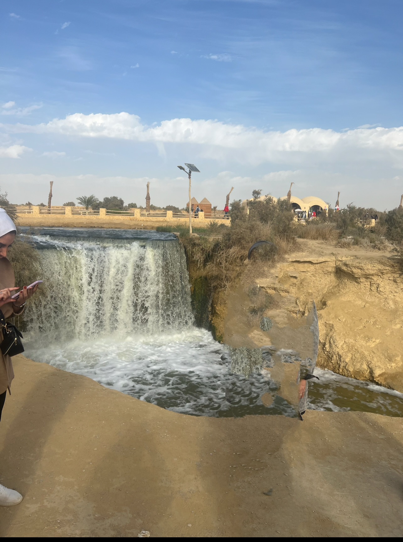 ولم تخذلني أبدًا. دائمًا ما كانت صحيحة، ولم تخطئ إلا مرة واحدة فقط في تلك المرة، عندما استغربت وشاركت أفراد أسرتي بما يدور في بالي قفزت ابنتي ياسمين وقالت لي بصراحة: "يماما، هذه المرة من صنع يدي. أنا ركبت الفردتين على بعضها. كنت أراقبك وأرى أنك ستسافرين لكنك لم تسافرِ إلا بعد شهرين من التخطيط المسبق." وهذا شلال الفيوم فورًا زرته لا أعلم كيف صورت صديقتي ولم أنتبه هههه